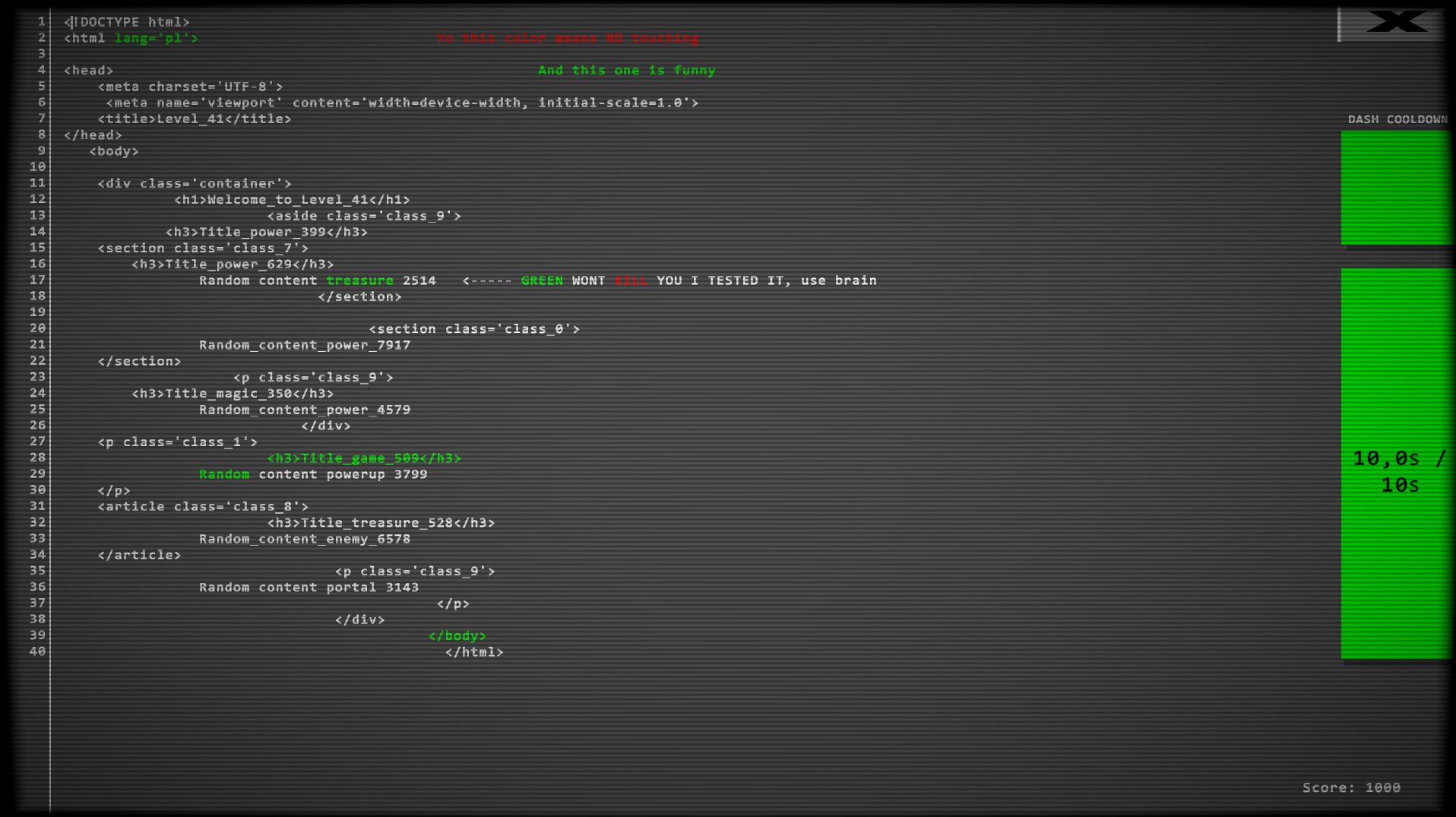 You are cursor that have to get to the end of the code by pressing WSAD or using arrows. I can't say more you just have to experience it.